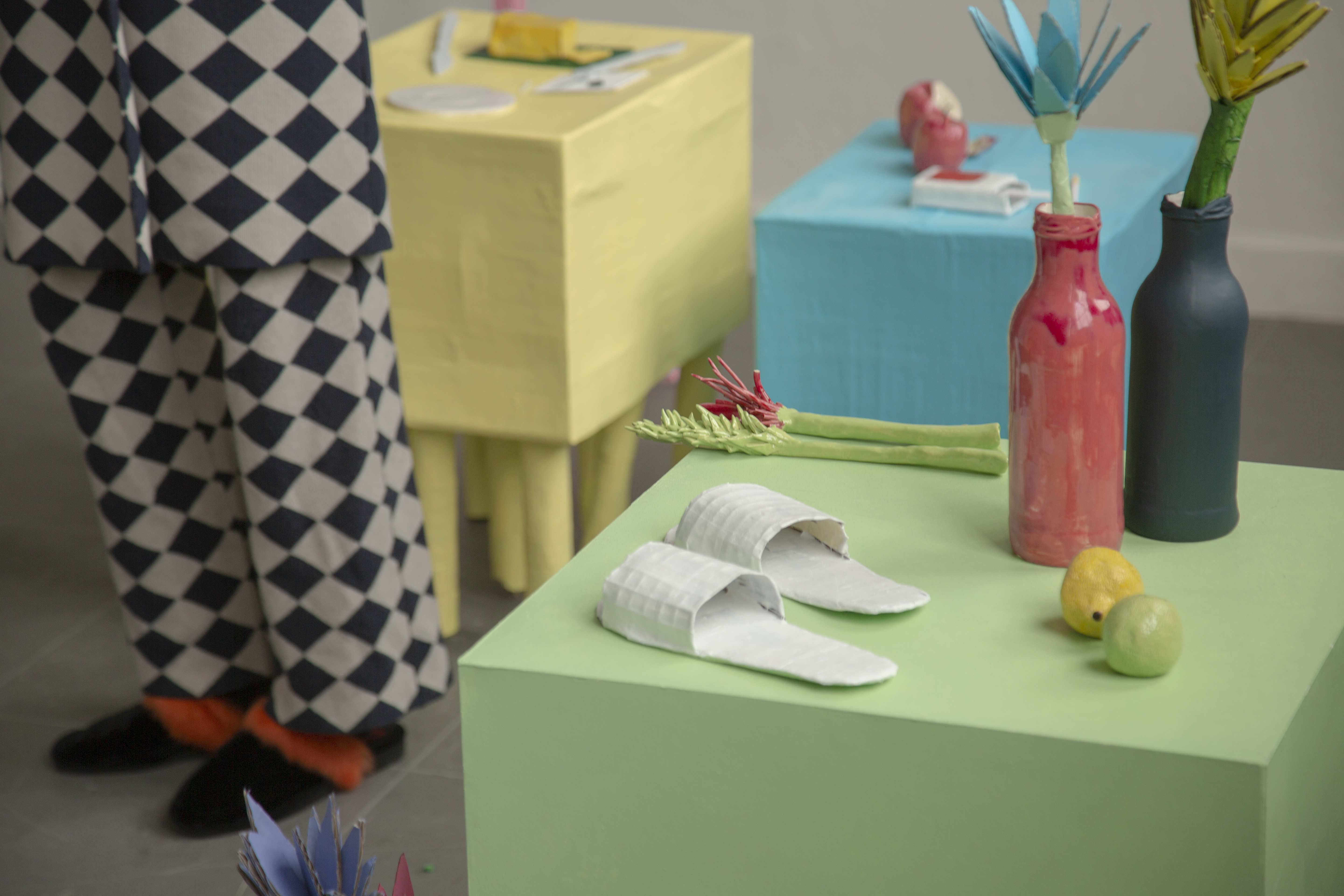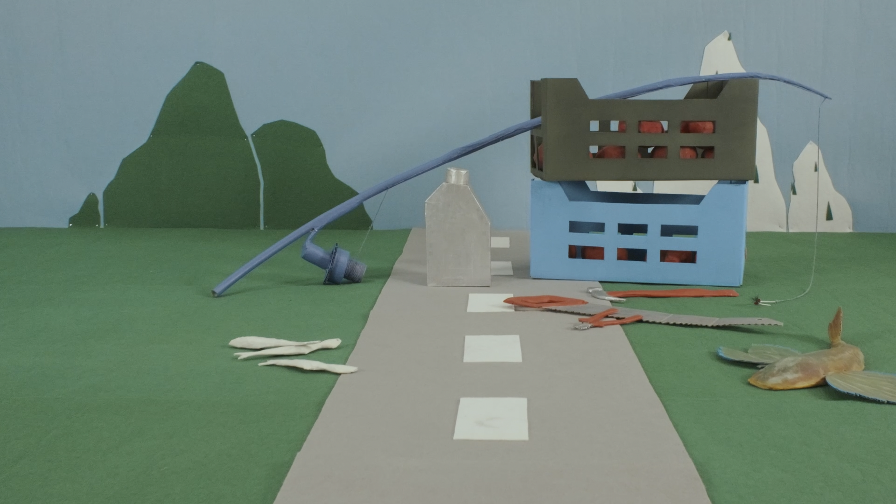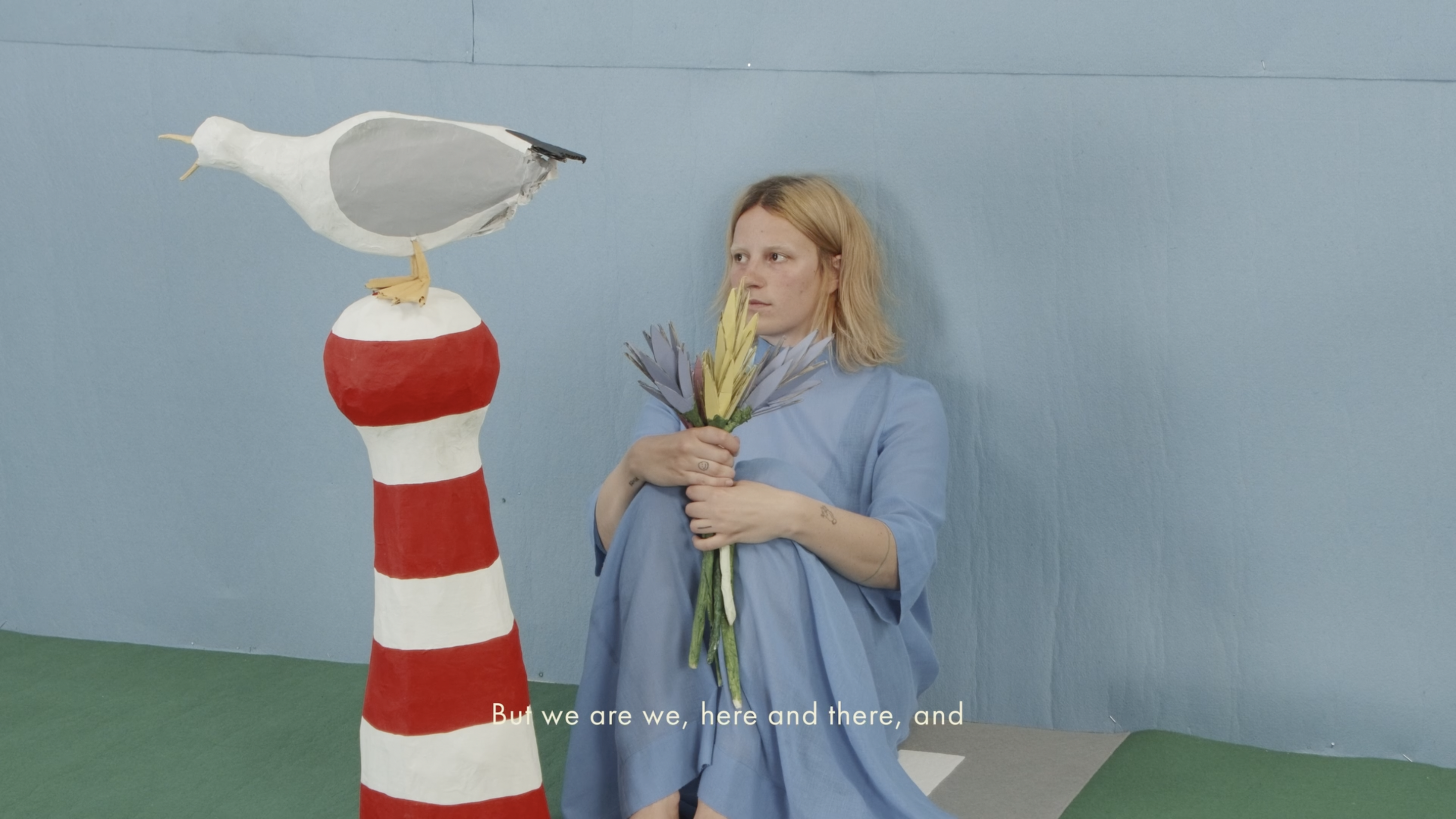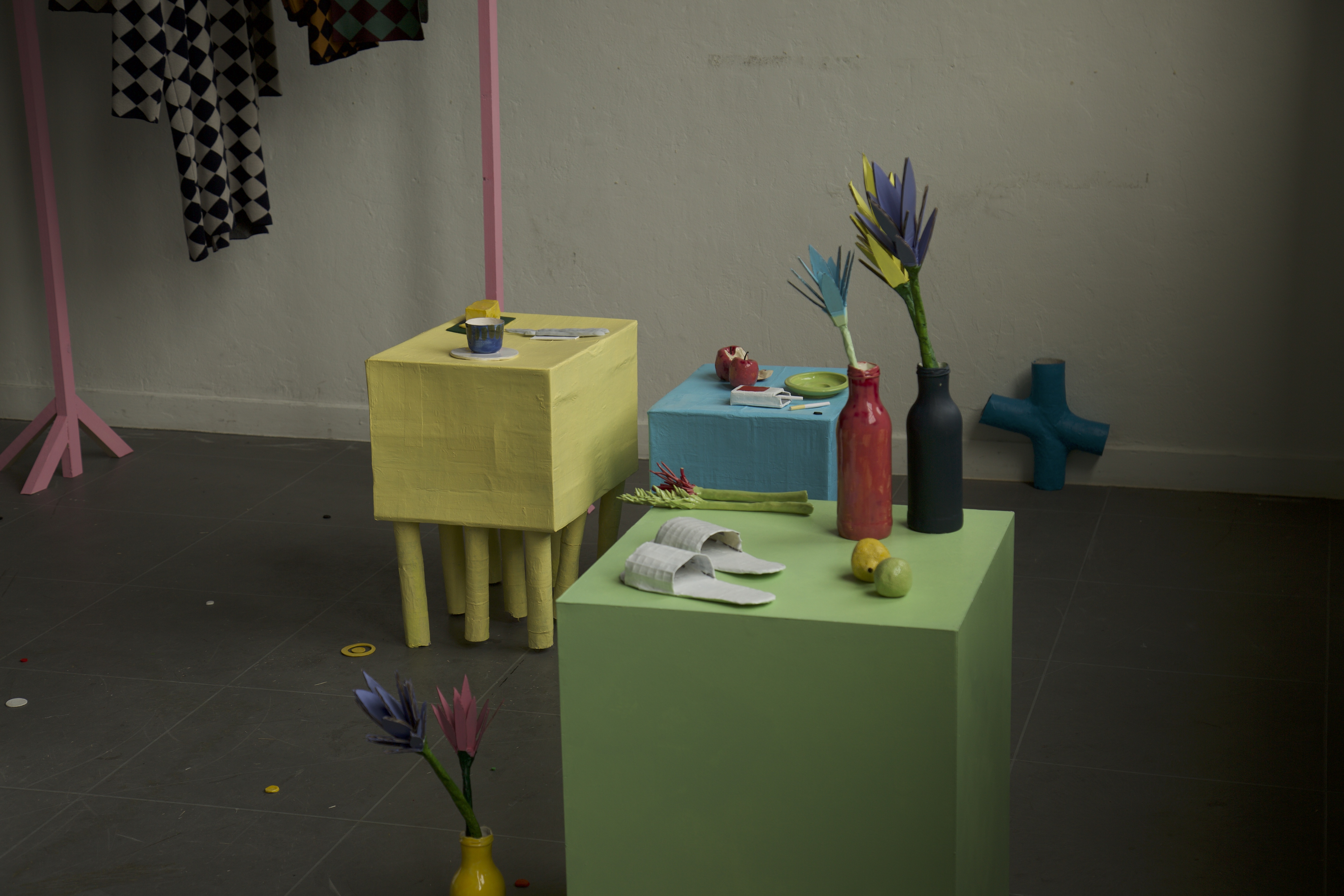-a video / sculptural installation consisting of the props and parts of the set where the video itself is shot