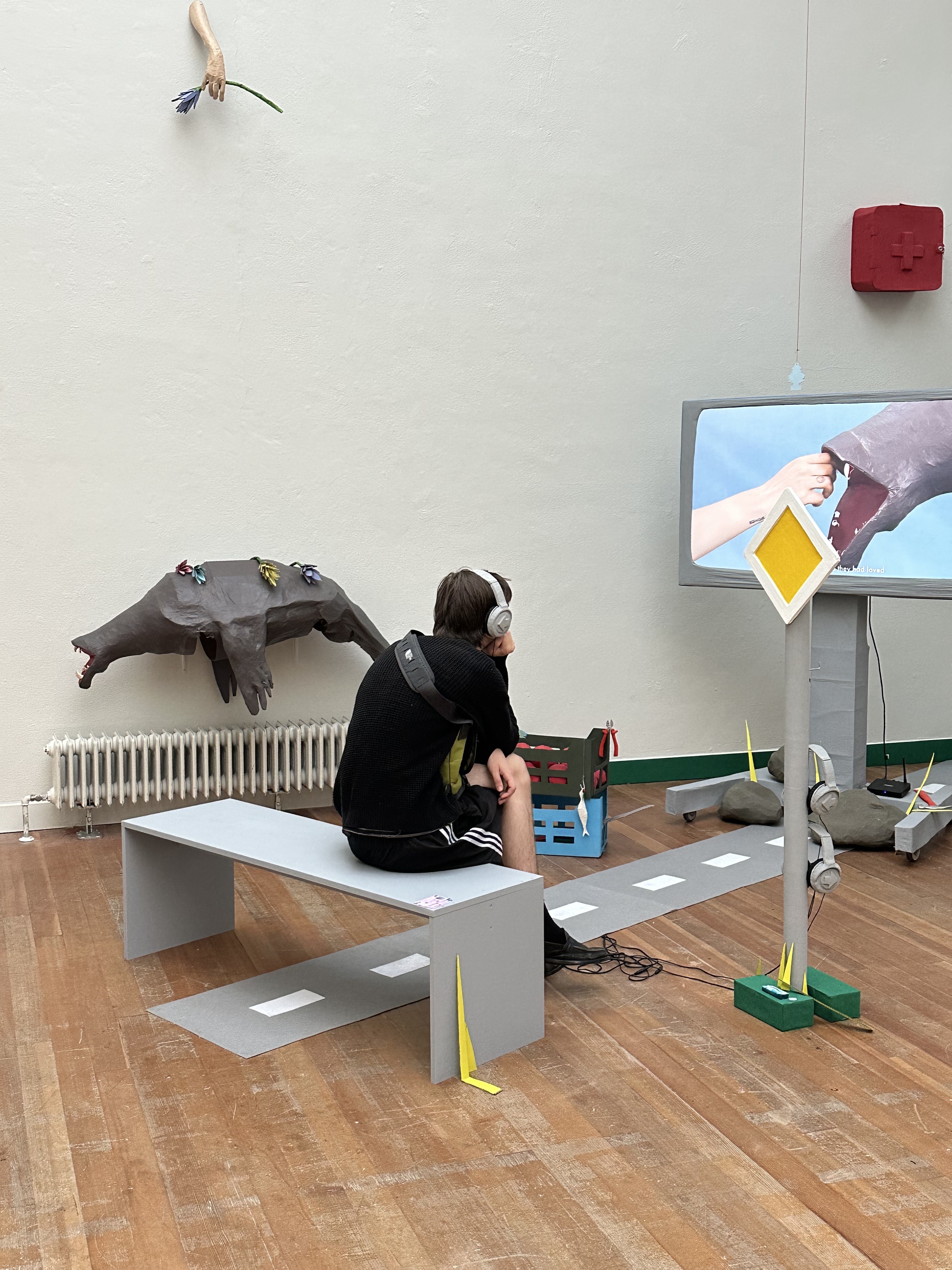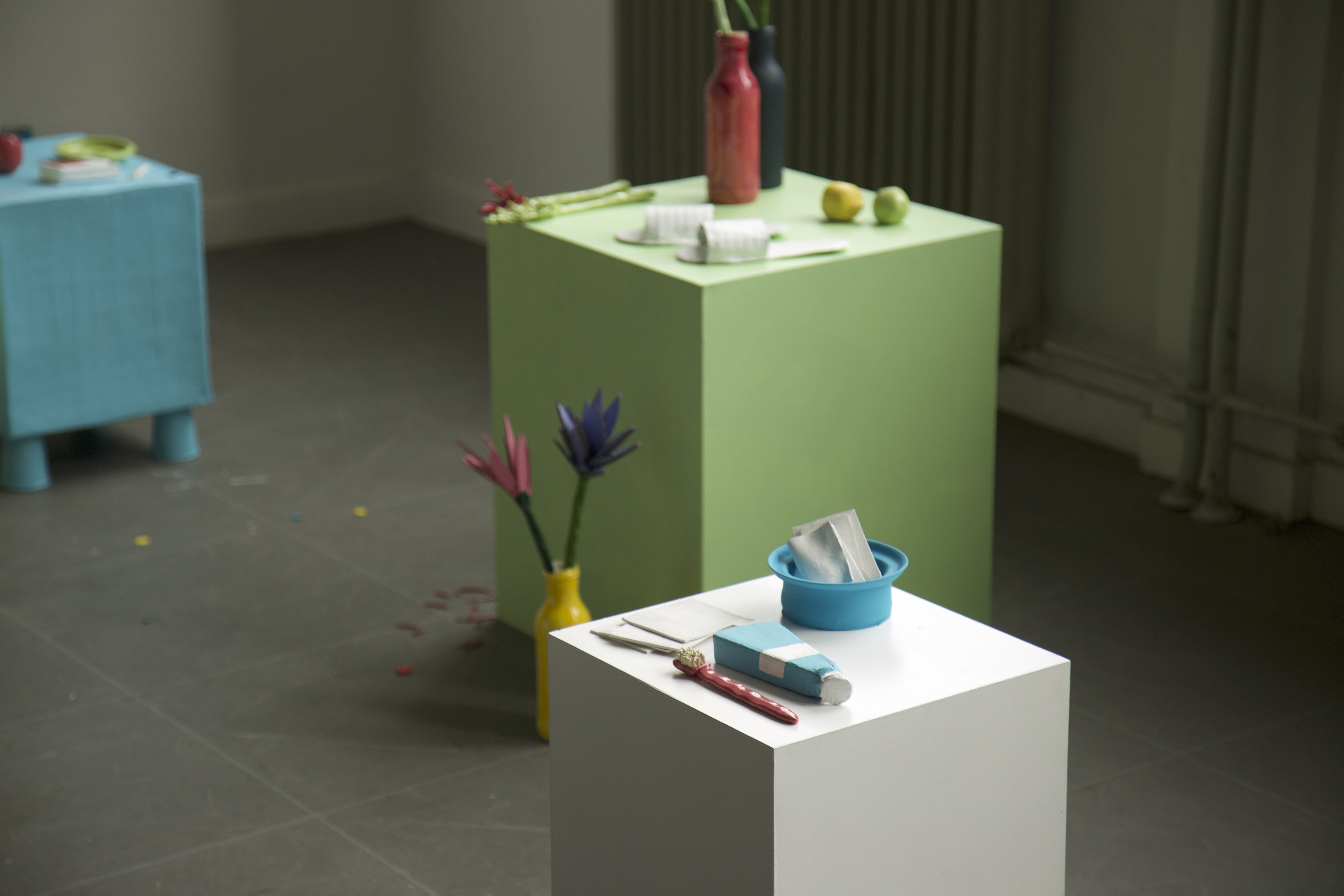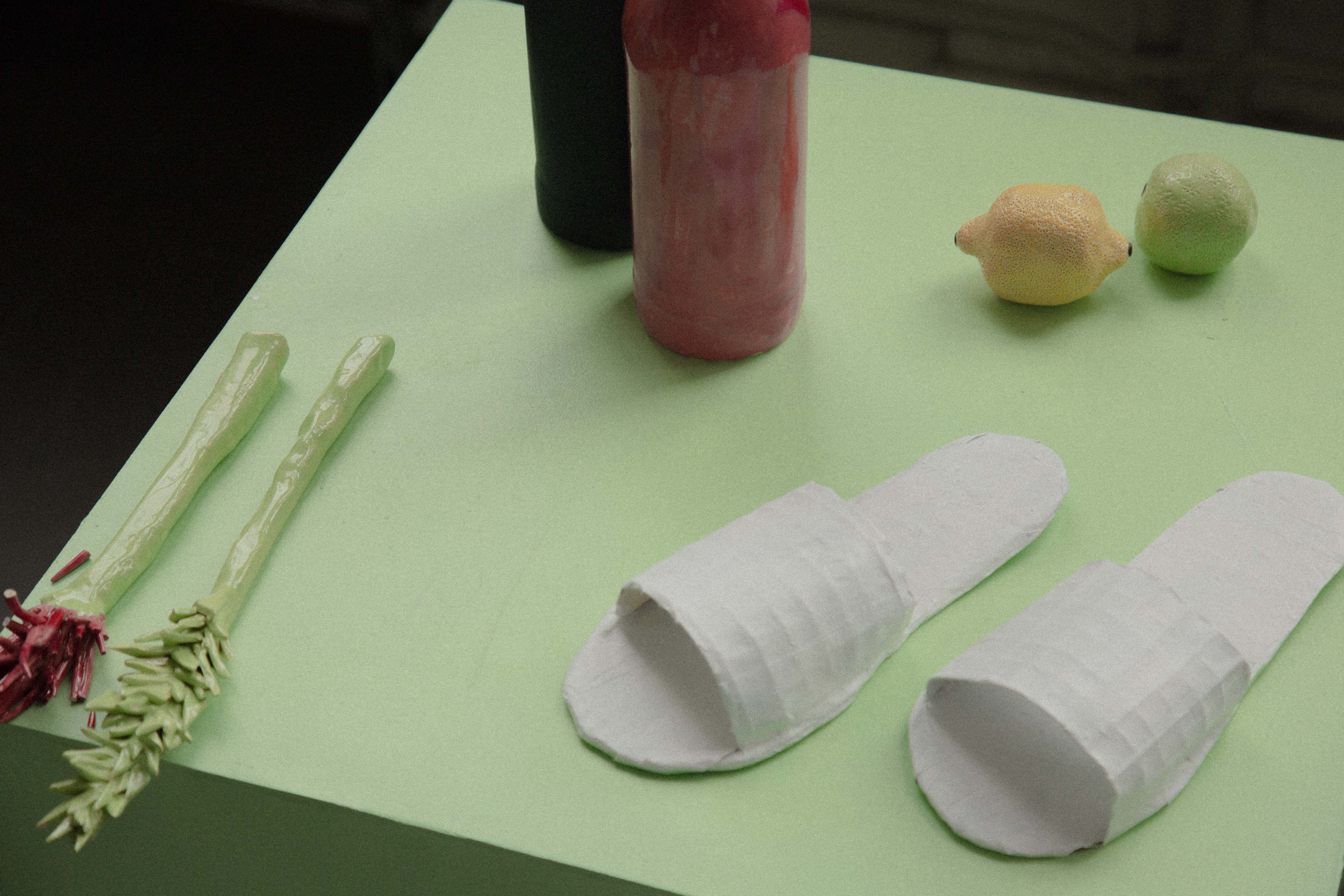 -a video / sculptural installation consisting of the props and parts of the set where the video itself is shot