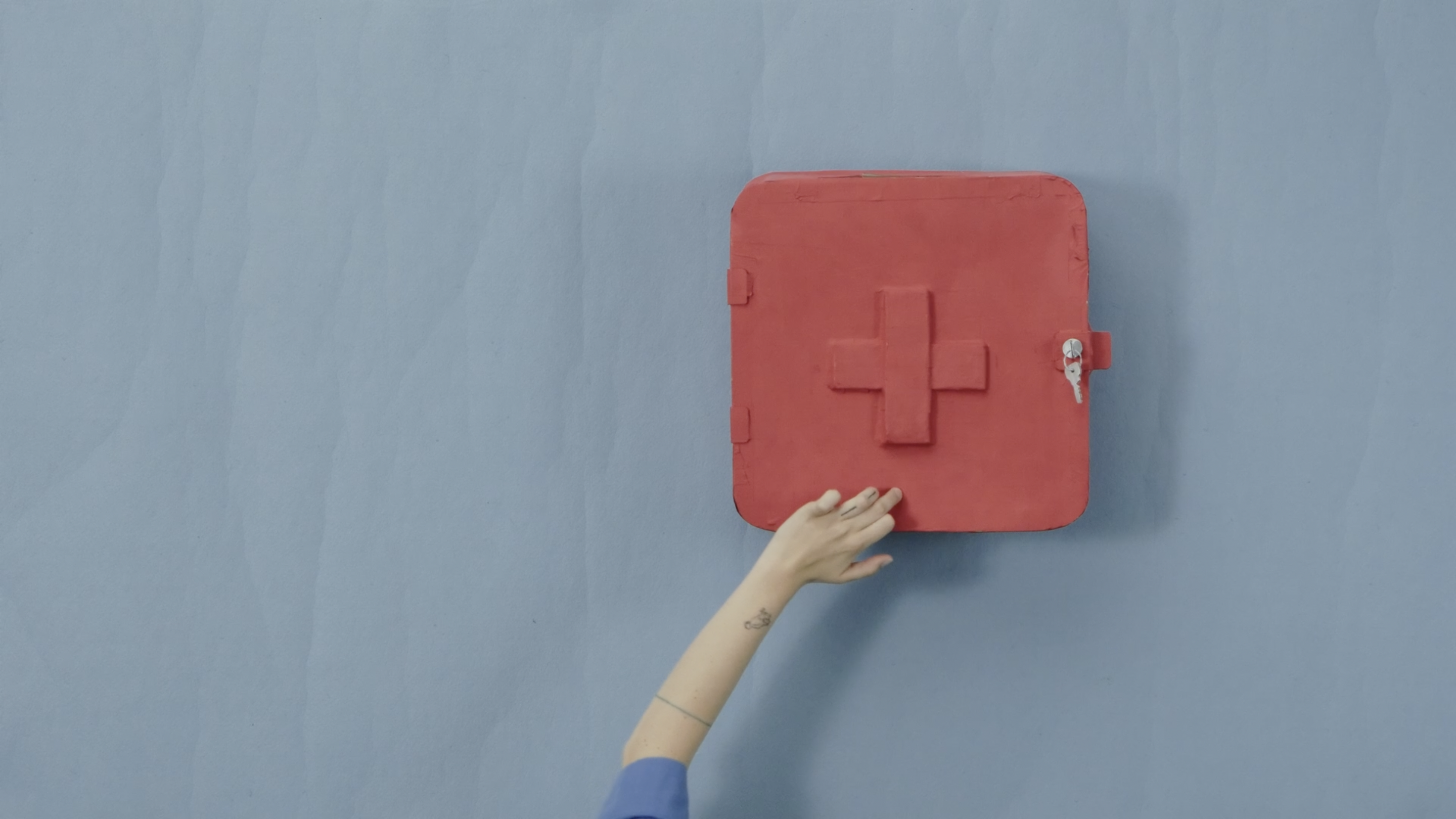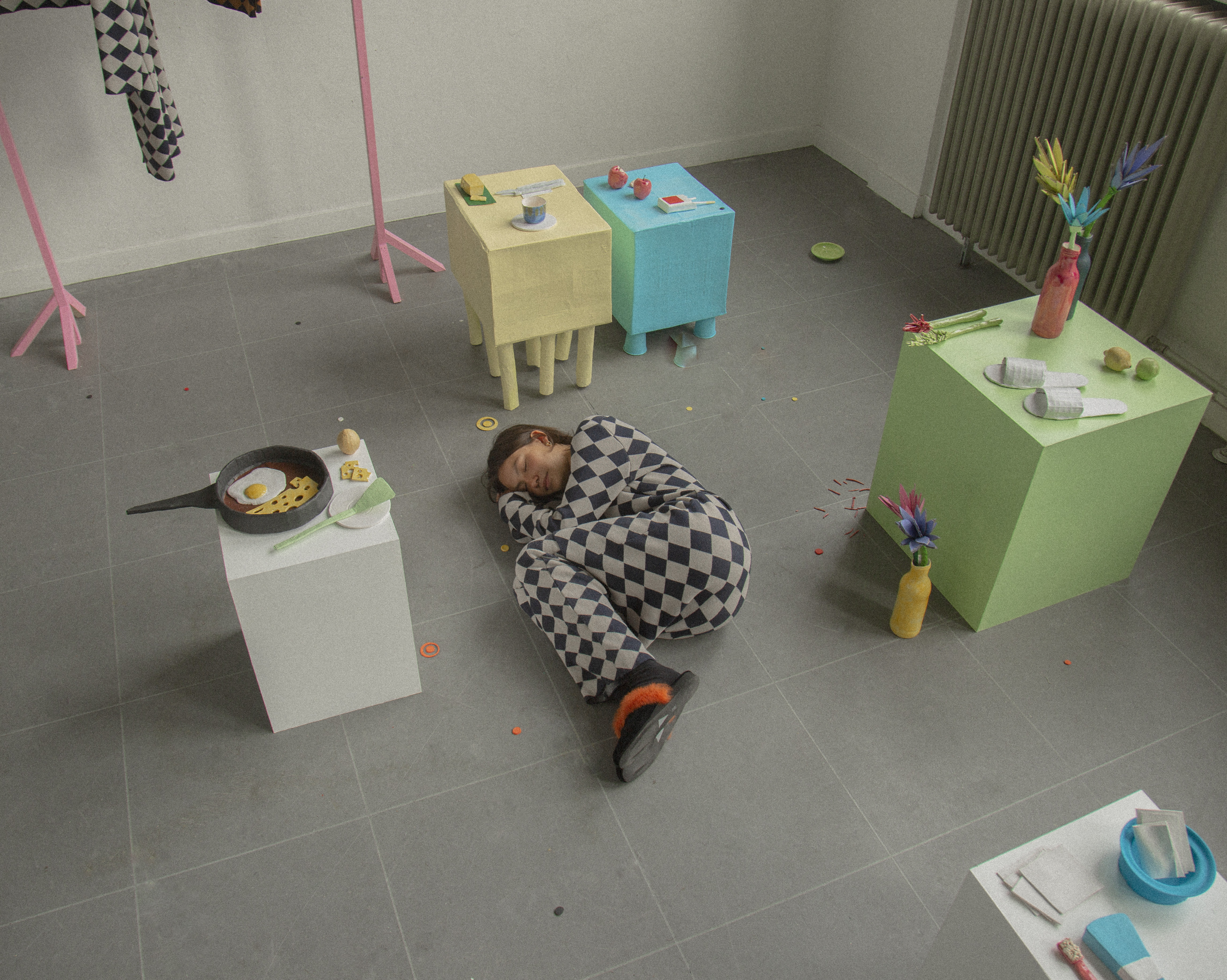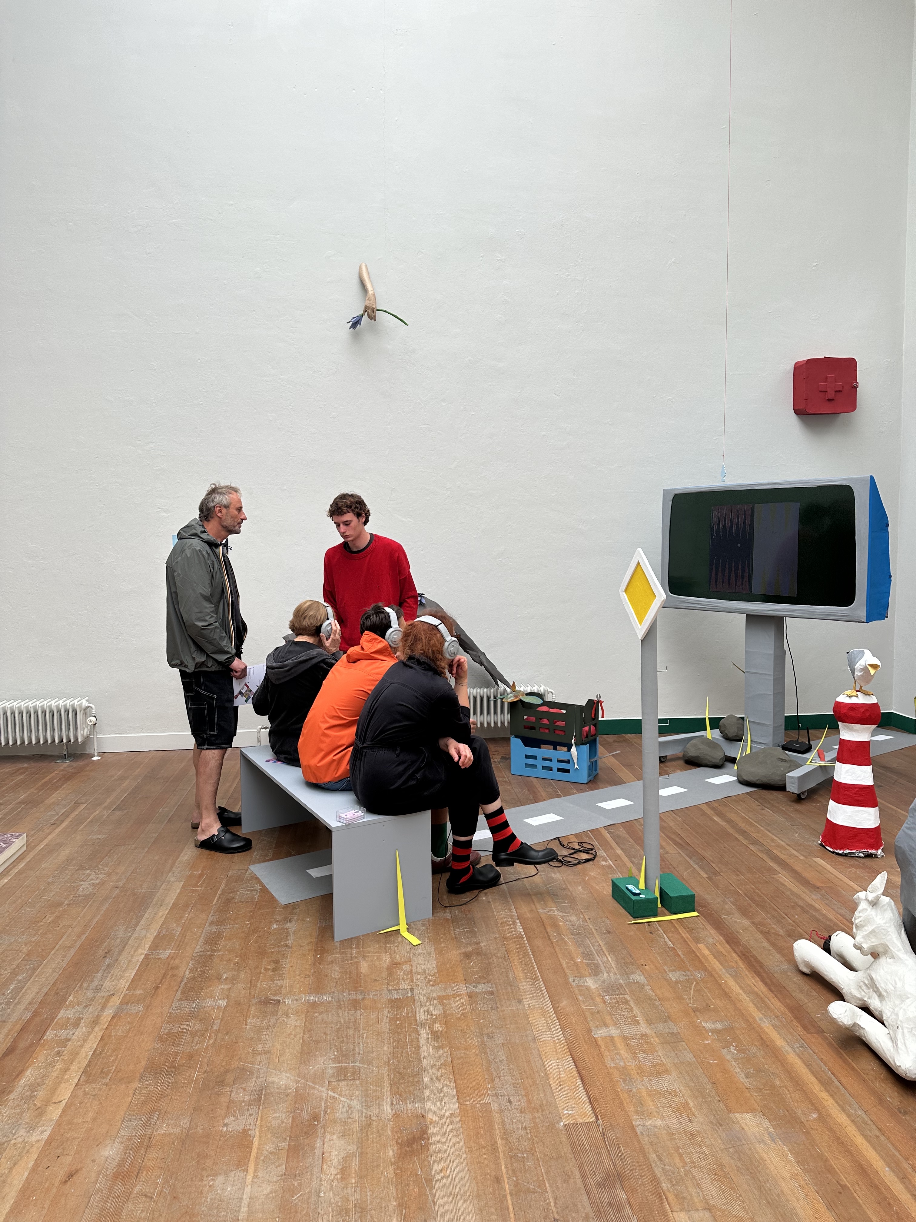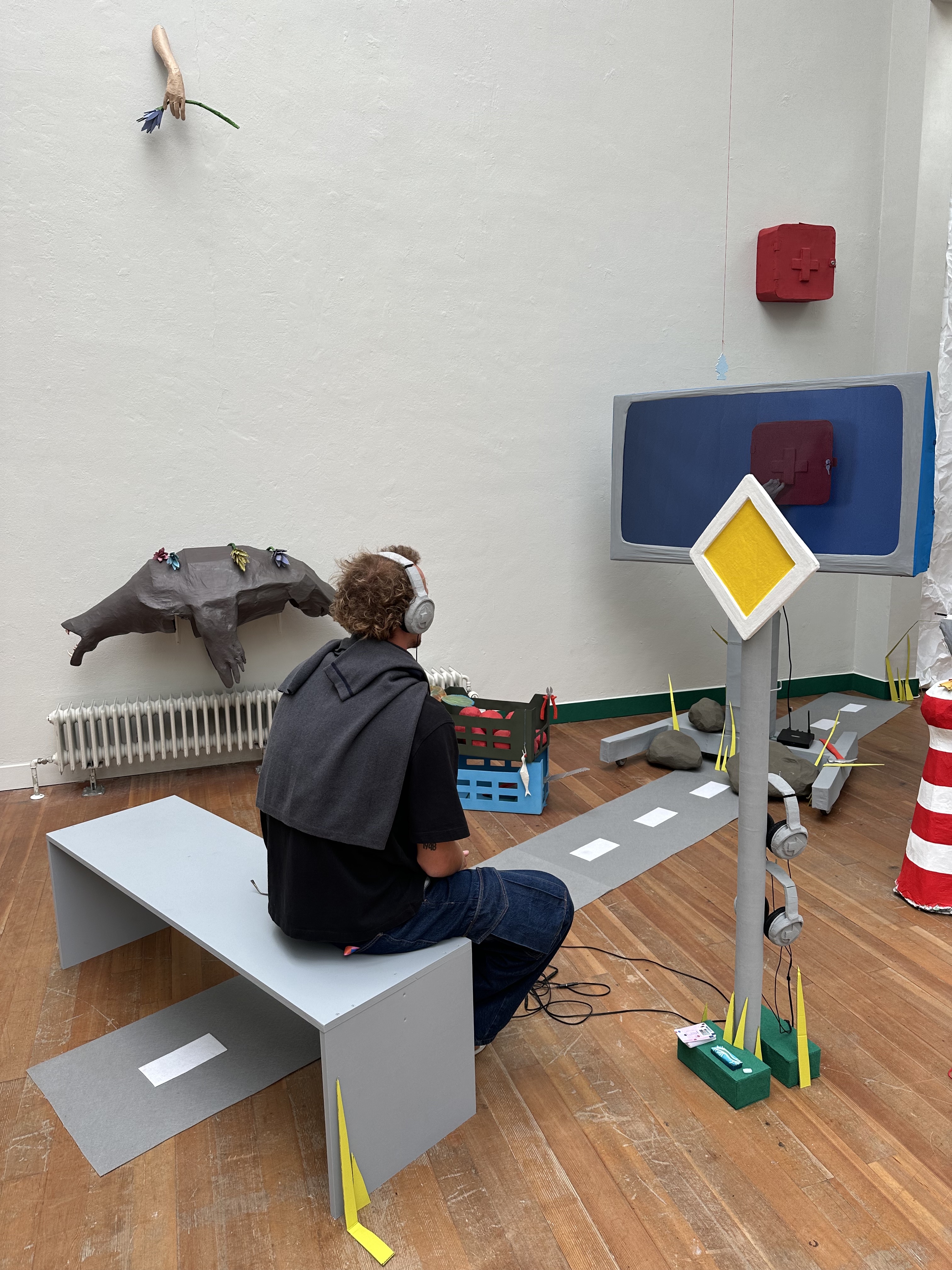 -a video / sculptural installation consisting of the props and parts of the set where the video itself is shot