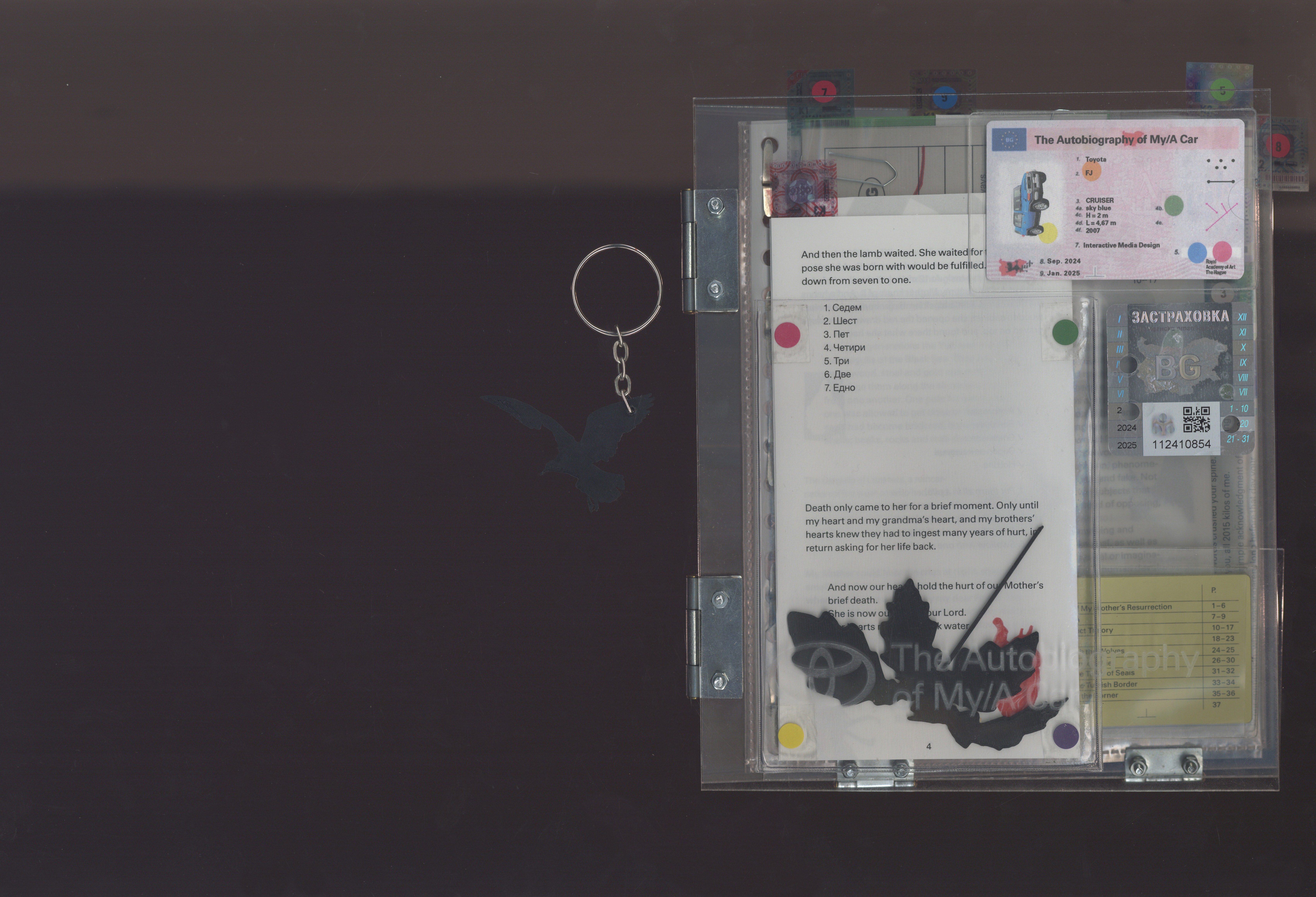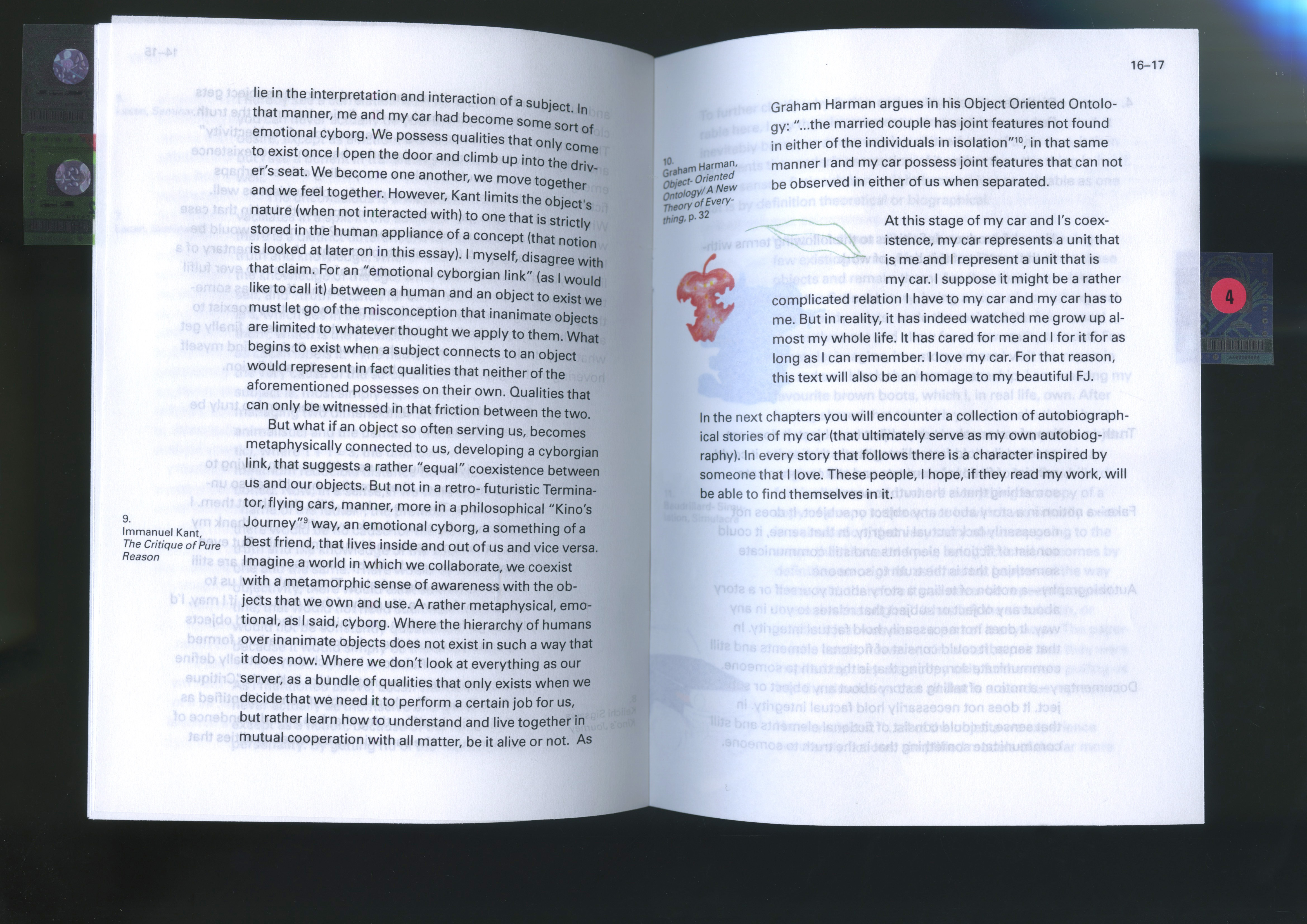 -a part theoretical, part fictional paper that focuses on human’s reltions to objects and dives into the particularity of mine to my car. It is an autobiography of myself, told by my car.