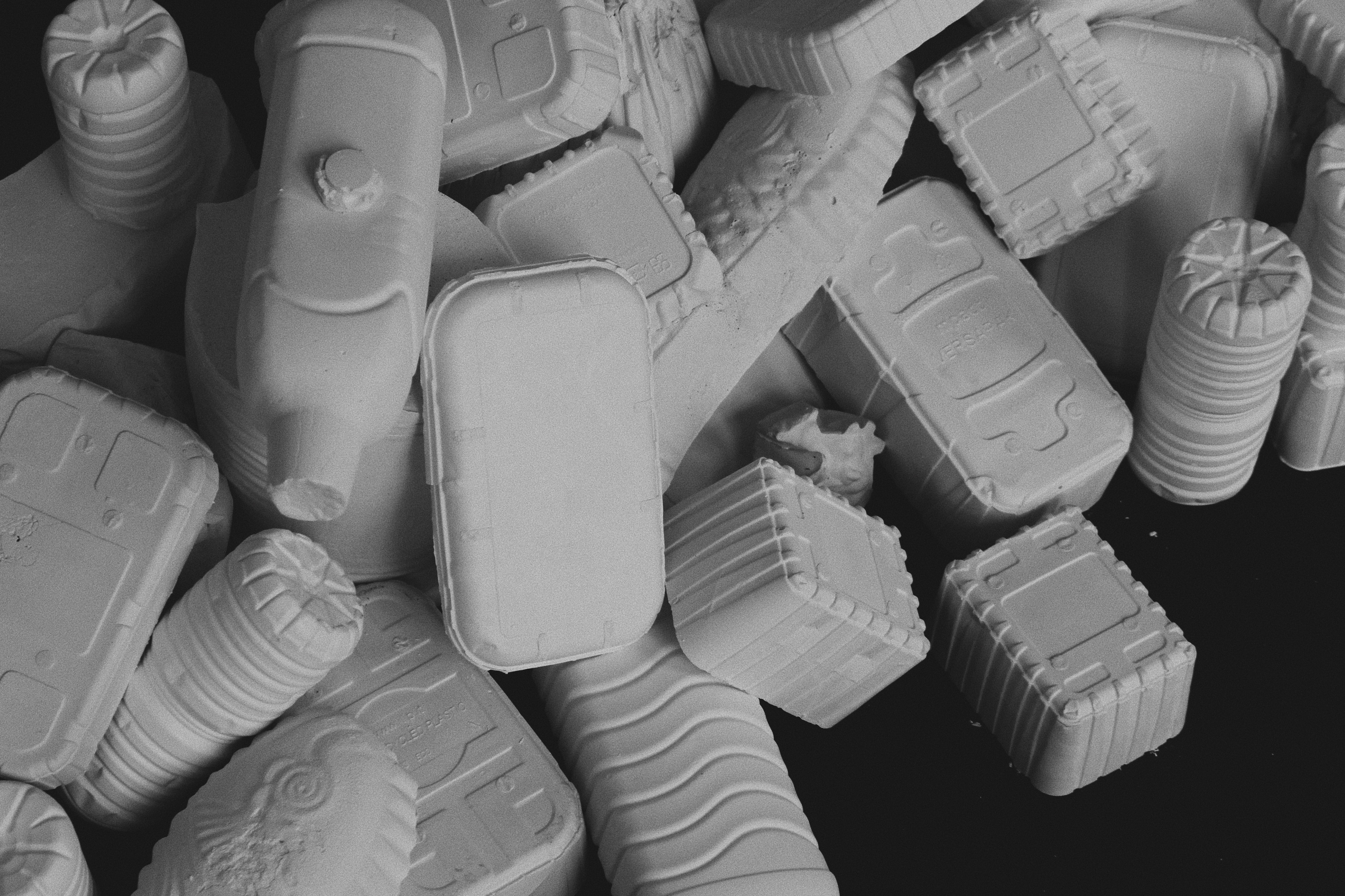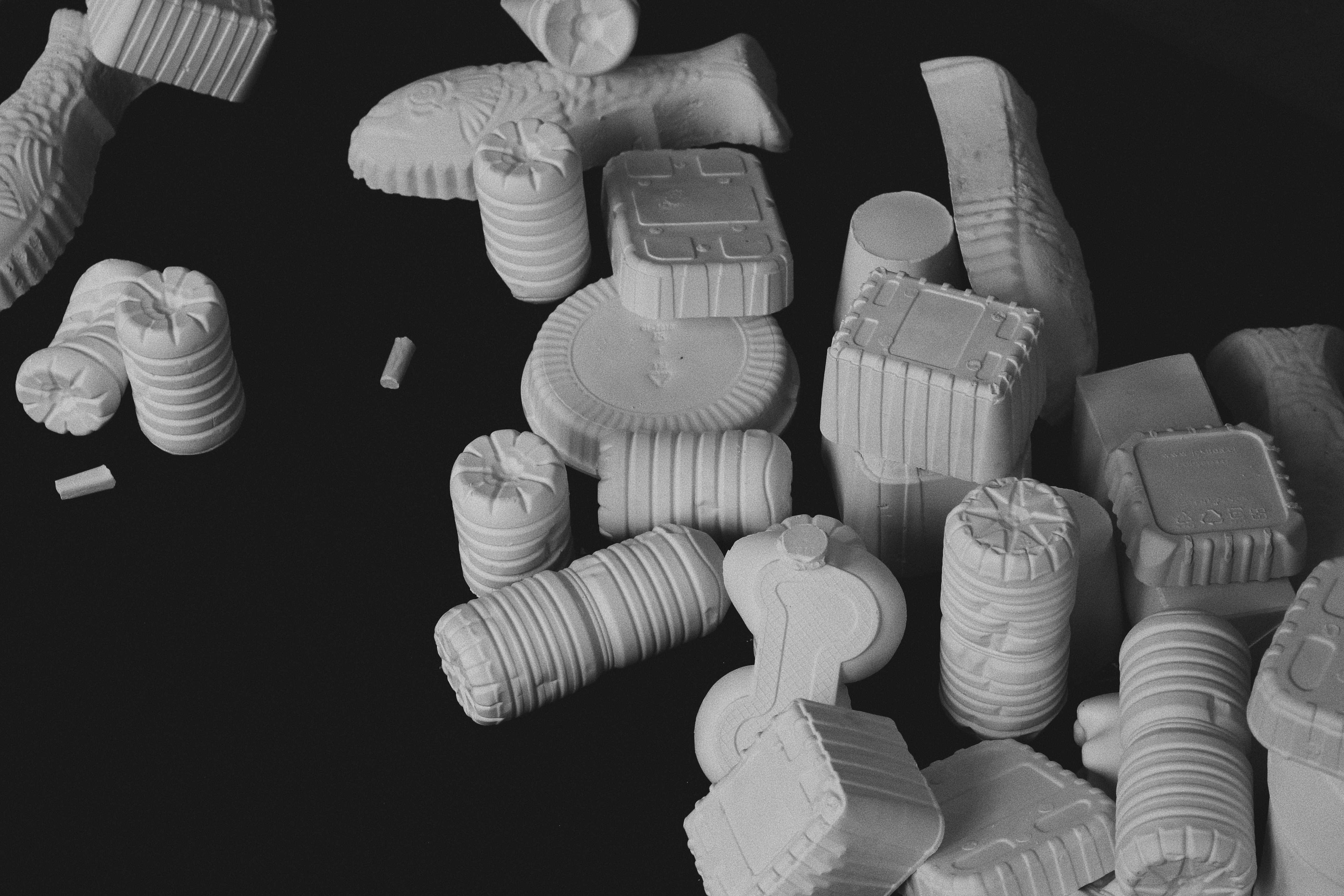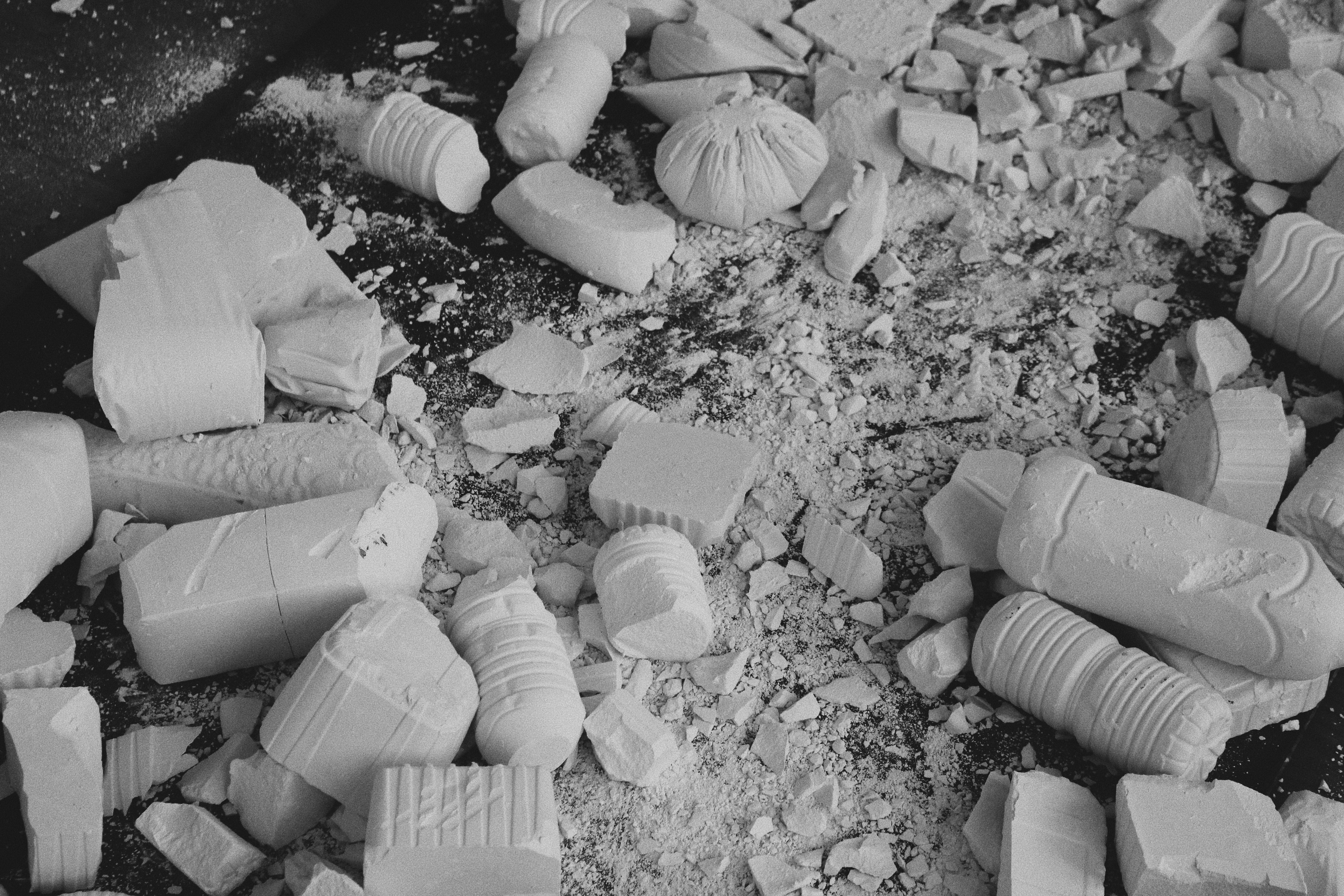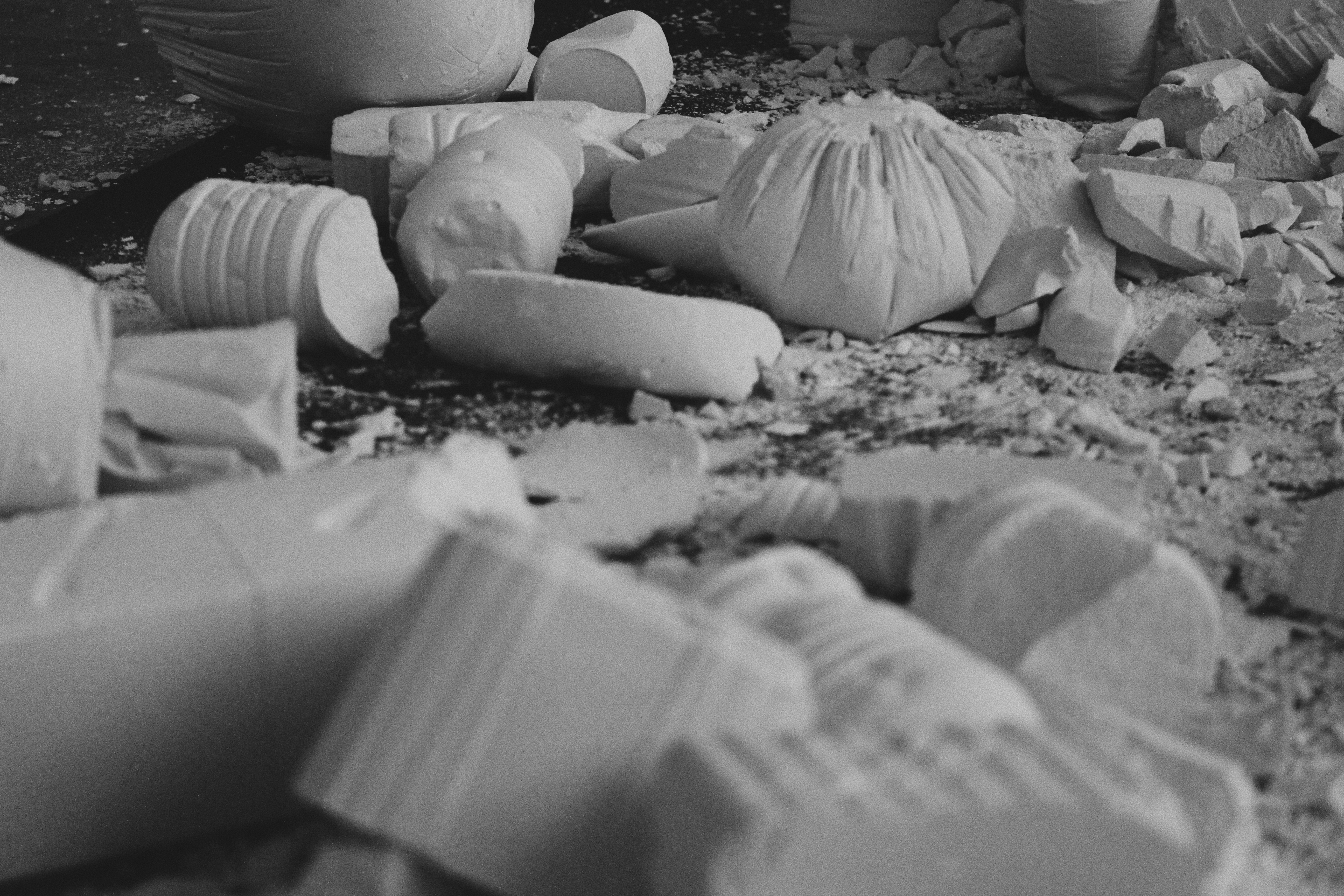 an interactive sculptural installation, where the audience is invited to destruct 100 plaster sculptures.